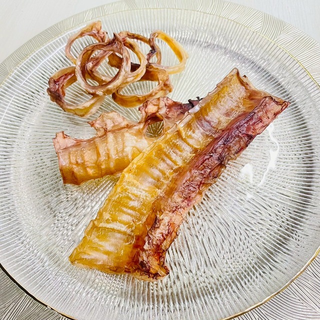珍しいおやつ!牛のちくわ(血管)をジャーキーにしました☆ 硬いおやつなので、かむことで、ストレス解消◎ 大型のわんちゃんに向いています。 ◆内容量◆200g ◆原産国◆国産 ◆原材料◆牛