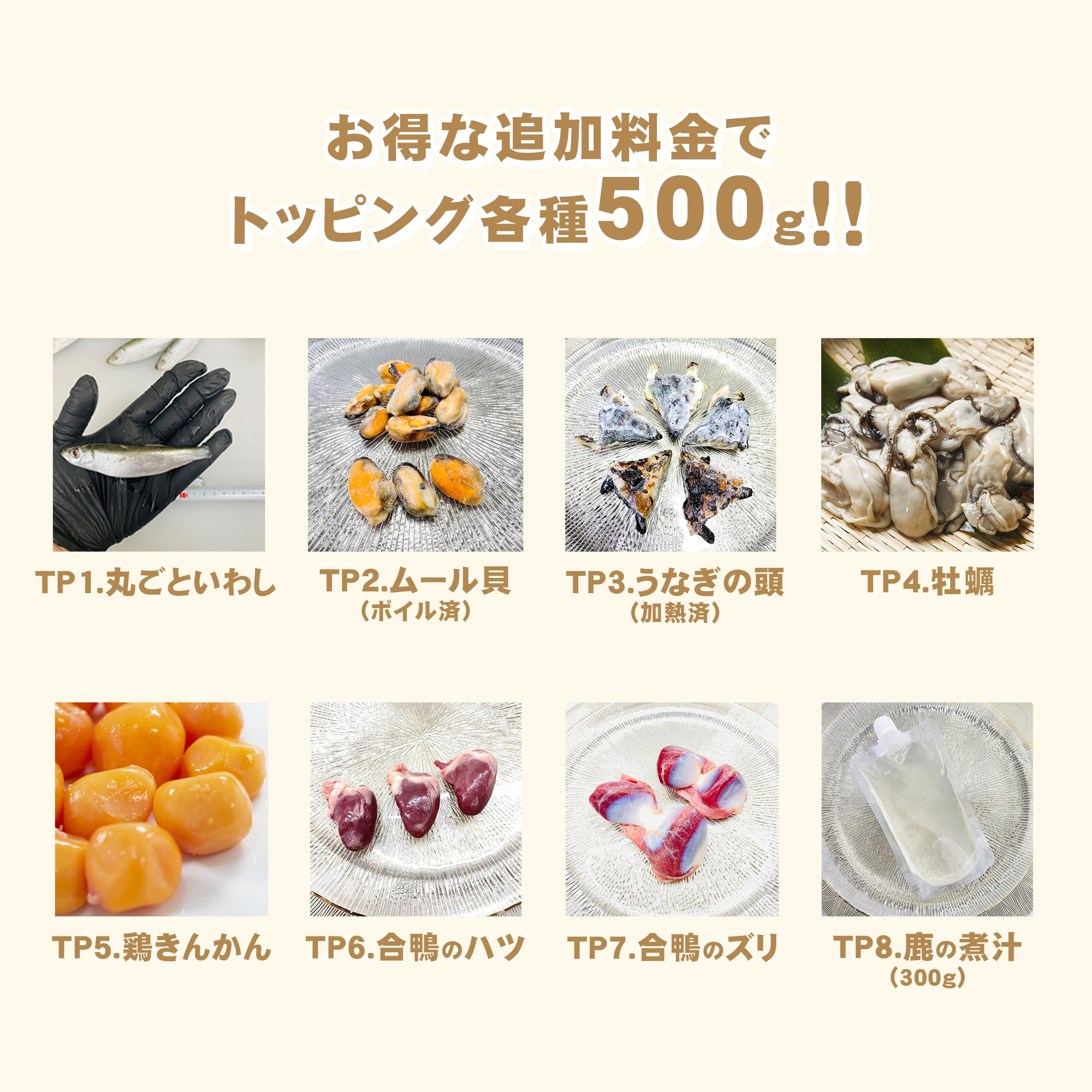 さらに、お得な追加料金でトッピングを合わせ買い出来ます!