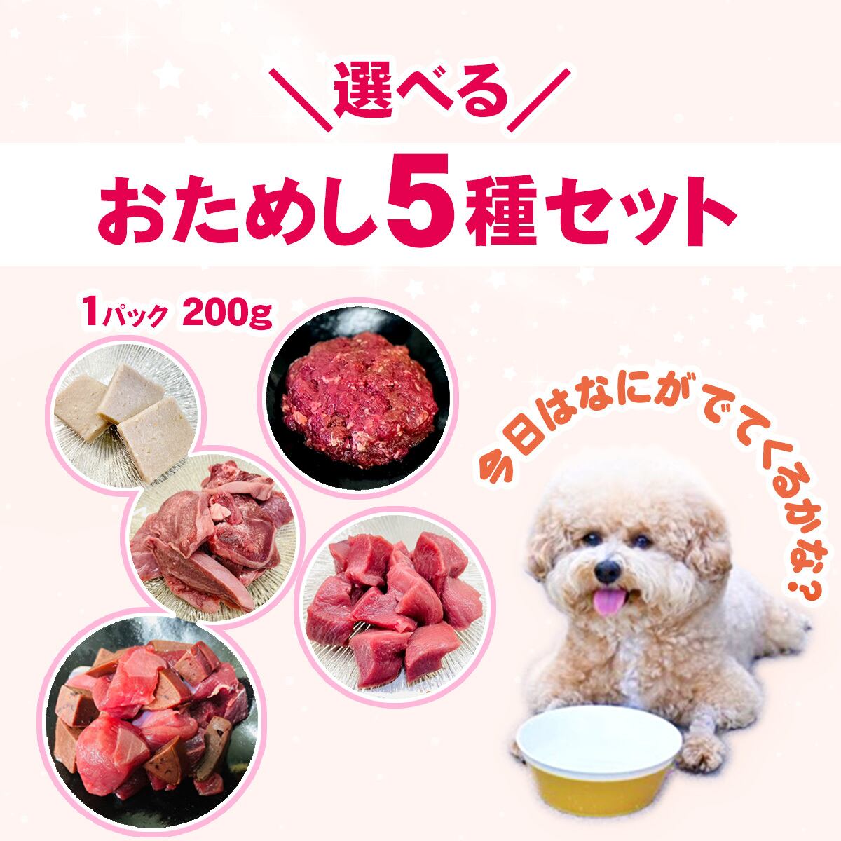 わんちゃんにとって楽しみの一つである食事。この5種セットでは、どんな素材が愛犬のお気に入りかお試しできます(*^^) ※合鴨の商品は追加料金がかかります。