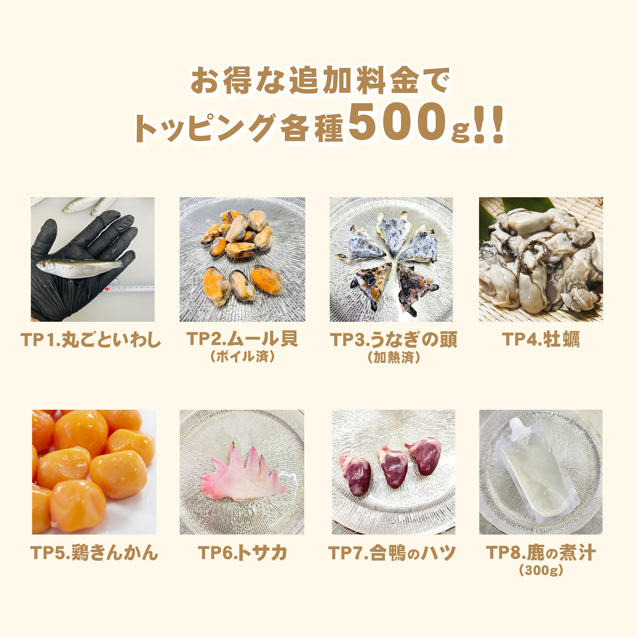 さらに、お得な追加料金でトッピングを合わせ買い出来ます!